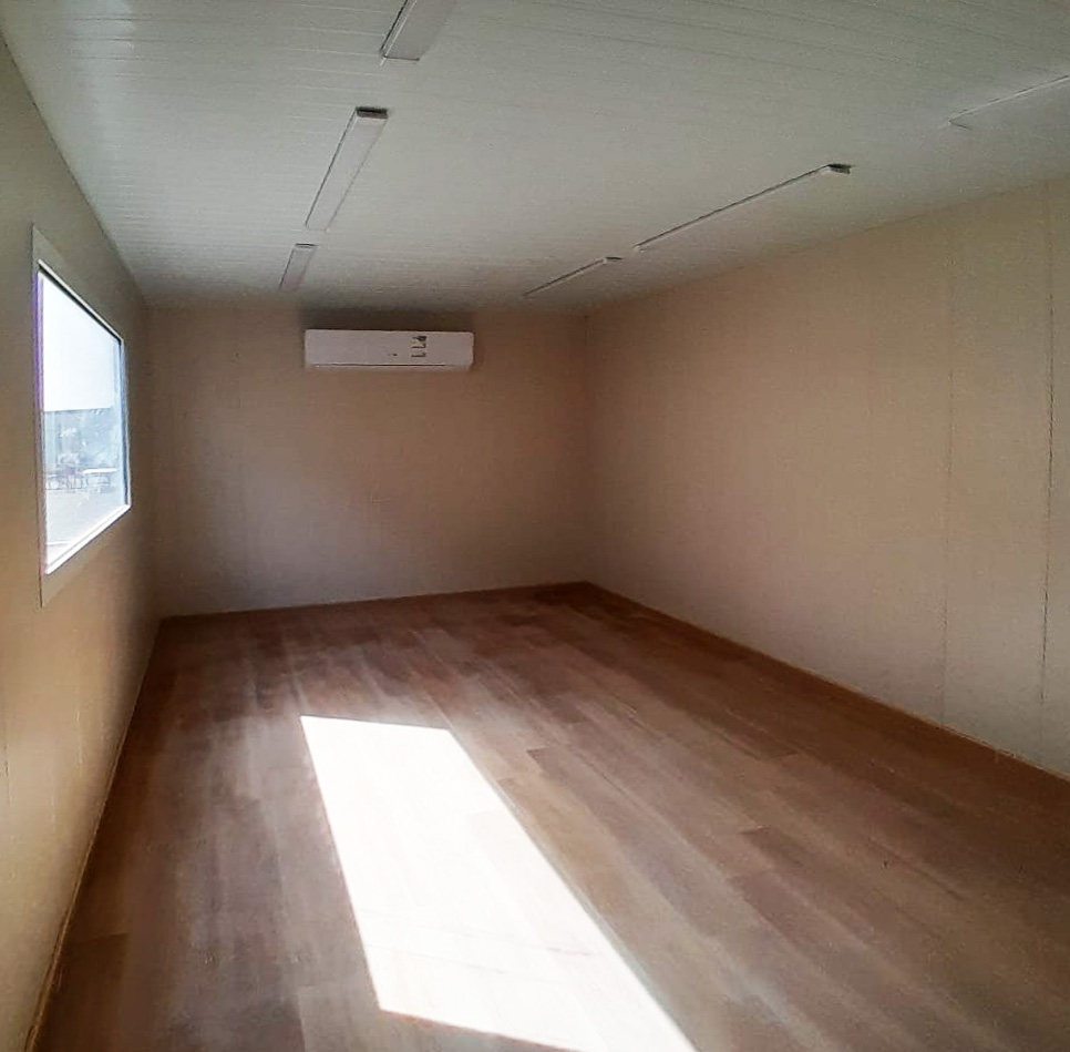 Discover our premium 6m cabin, available in stylish grey or beige with customizable colors. Measuring 600 cm x 300 cm x 330 cm and weighing approximately 4 tonnes, this cabin features a durable cement board textured paint exterior. The interior offers luxury with vinyl, SPC parquet, or Delta carpet flooring options. Equipped with efficient heating and cooling air conditioning, warm LED lighting, nine 13-amp power sockets, and a 32A industrial single-phase power supply, it ensures comfort and utility. Perfect for various applications, it’s easy to transport using a 25T crane, flatbed truck, or 10T boom truck. The double glazed curtain wall adds superior insulation. Optimize your space with our high-quality modular solutions.
